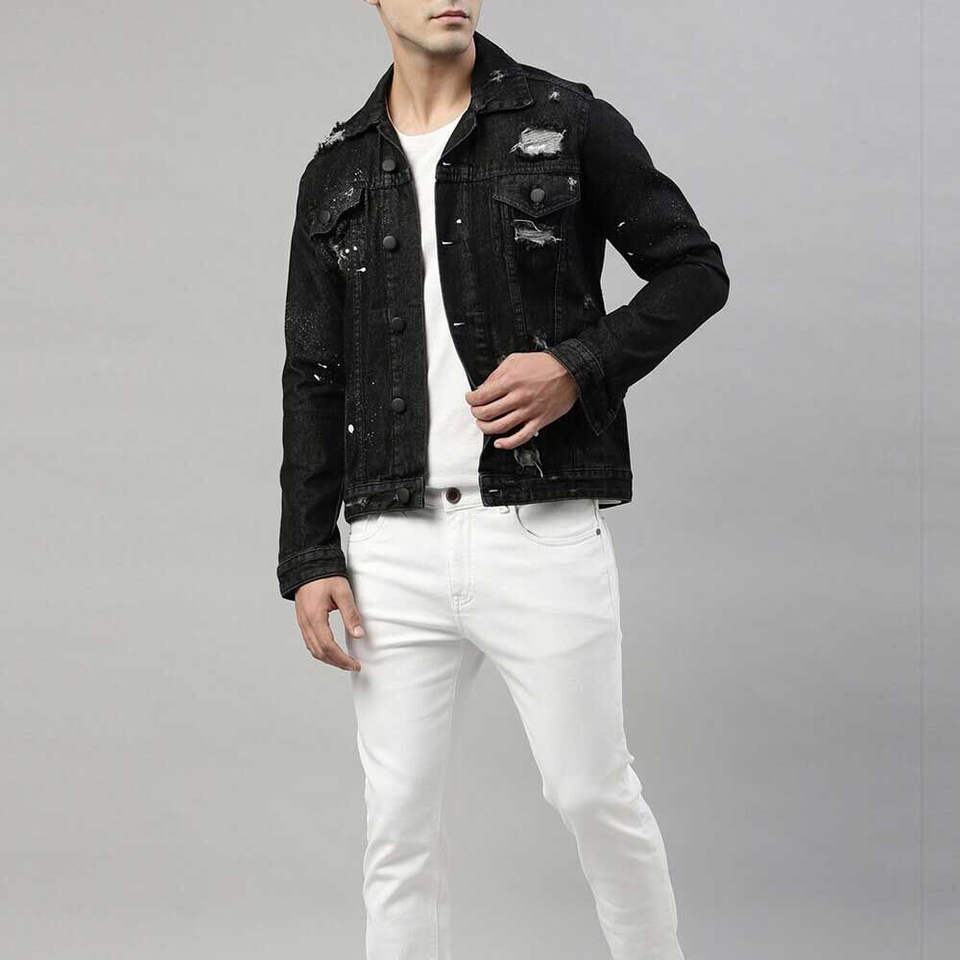 Chaqueta para Hombre, Primavera-Otoño, Chaquetas Vaqueras Informales de Color Sólido, Chaqueta de Mezclilla de Un Solo Pecho, Chaqueta de Algodón Ajustada para Hombre