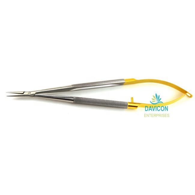 Jacobsen, soporte de aguja con mango de resorte de 4,75 pulgadas (15cm) con puntas STR de bloqueo, manijas doradas de acero inoxidable