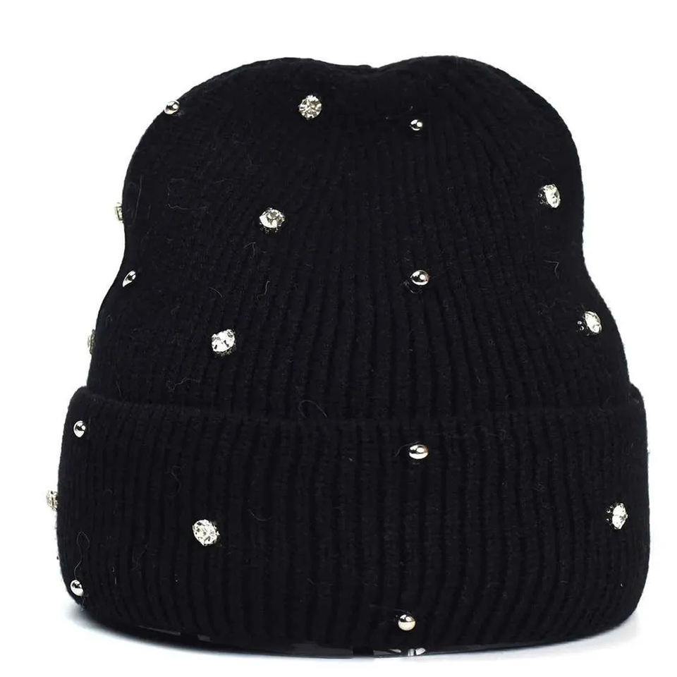 Gorros Jacquard Personalizados con Pedrería, Gorros de Invierno Cálidos y Elegantes con Pedrería Brillante, Hechos en Pakistán