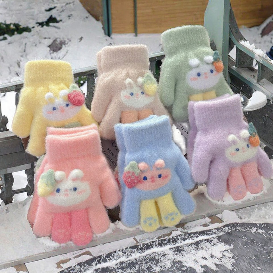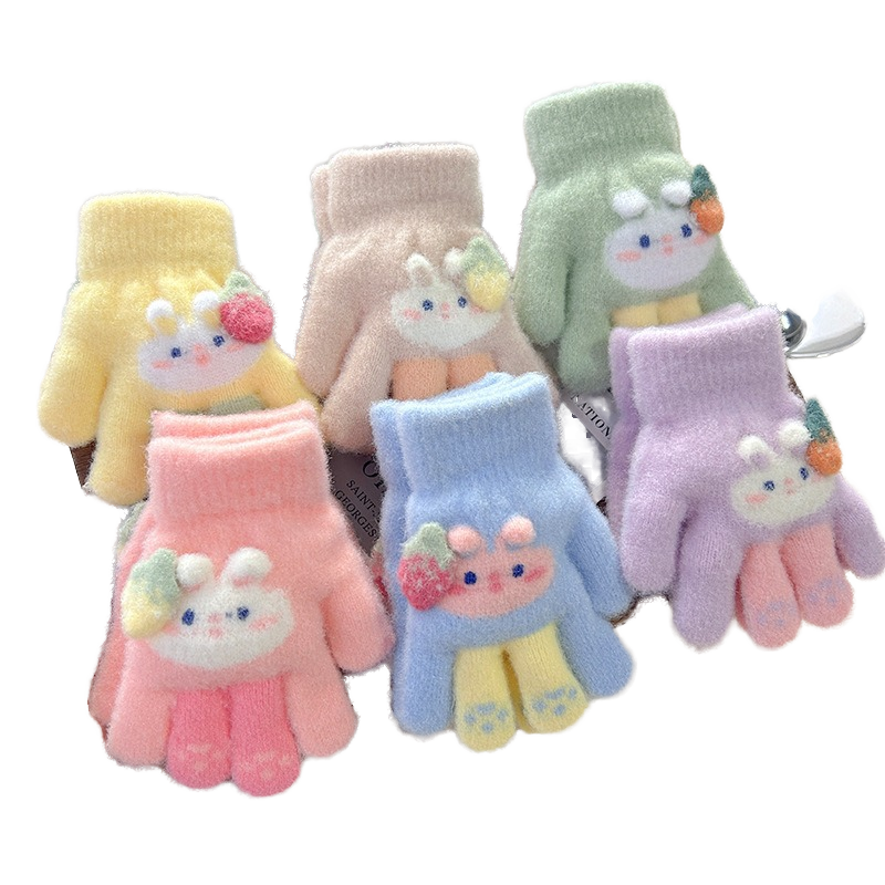 Guantes de punto Jacquard cálidos de invierno con diseño de conejo ciruela, gruesos, transpirables, de algodón y elastano, tipo opera, de dedo completo