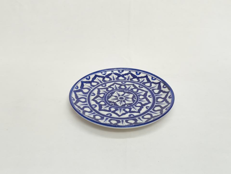 Diseño de patrón geométrico de cerámica azul Jaipur, vajilla para colgar en la pared pintada a mano, platos para servir