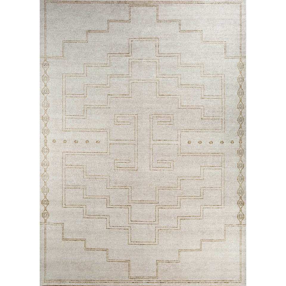 Alfombra de Lana Anudada a Mano Jaipur Rugs US Thyme Ivory con Patrón Geométrico para Decoración de Sala de Estar y Pasillo GS-43