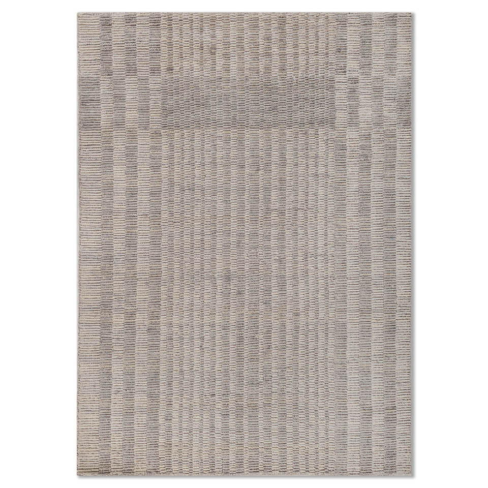 Alfombra de Lana Tejida a Mano Jaipur Rugs ZA, Diseño Contorneado Gris y Negro a Rayas, para Sala de Estar o Pasillo, Estilo Rompecabezas Rectangular, Material Viscosa - Modelo