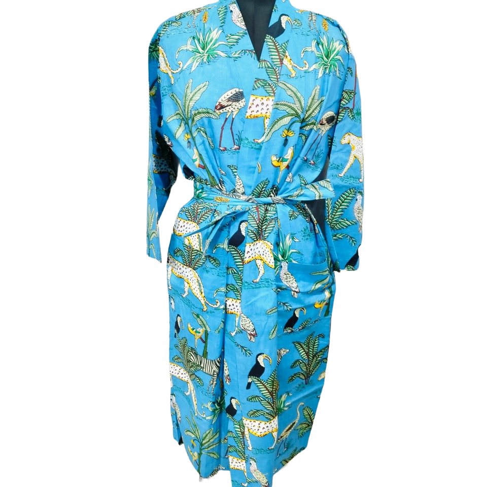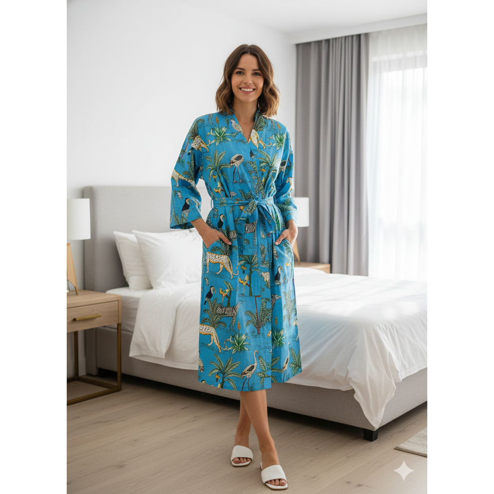 Bata cómoda y romántica con estampado Jaipuri, de tela tejida suave y transpirable, talla única, con logotipo personalizado, para el hogar, noche, invierno, con estampado de animales o liso.