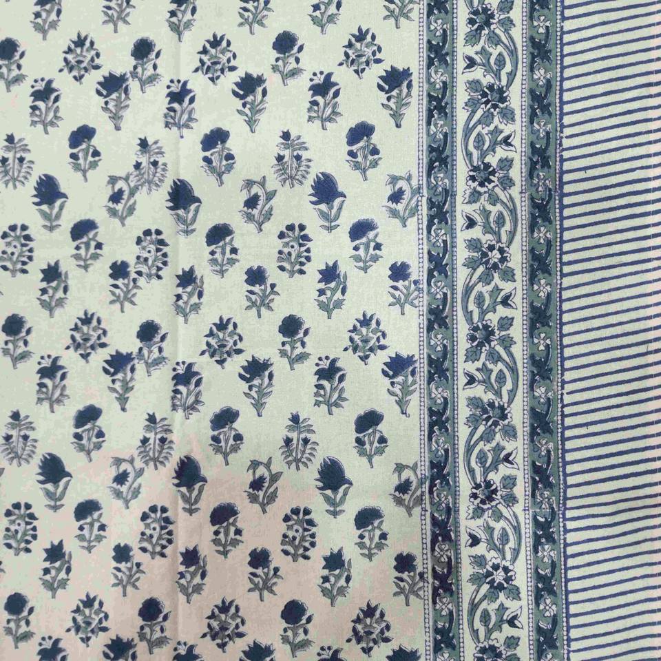 Sanvi K Handicrafts Blue Carnation Real Hand Block Impreso 100% Cotton Table Linen Table Cover