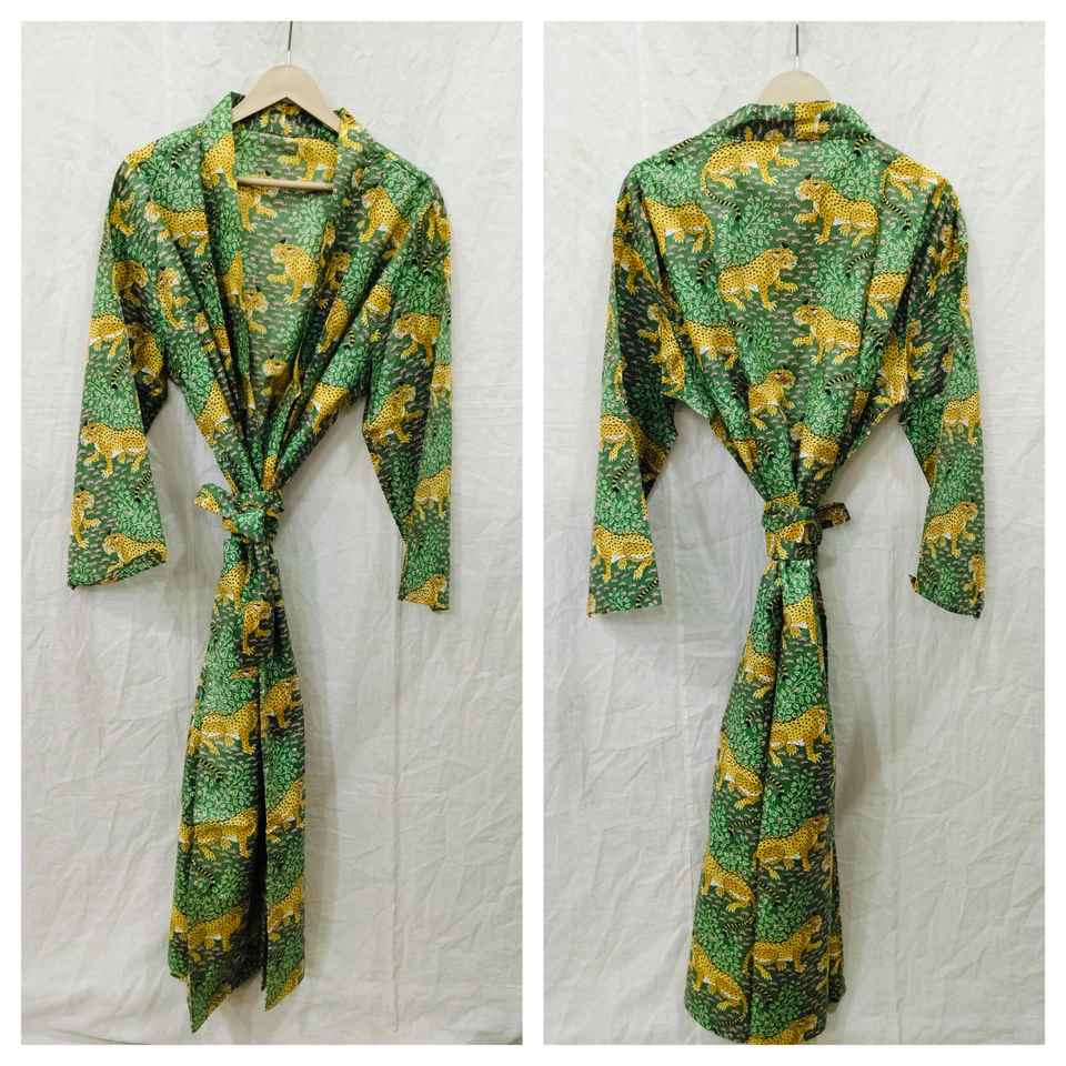 Bata de Lujo con Estampado Floral de Jaipur, Transpirable y Térmica, Talla Única, con Manga Media y Cierre de Lazo para Uso Nocturno en Invierno