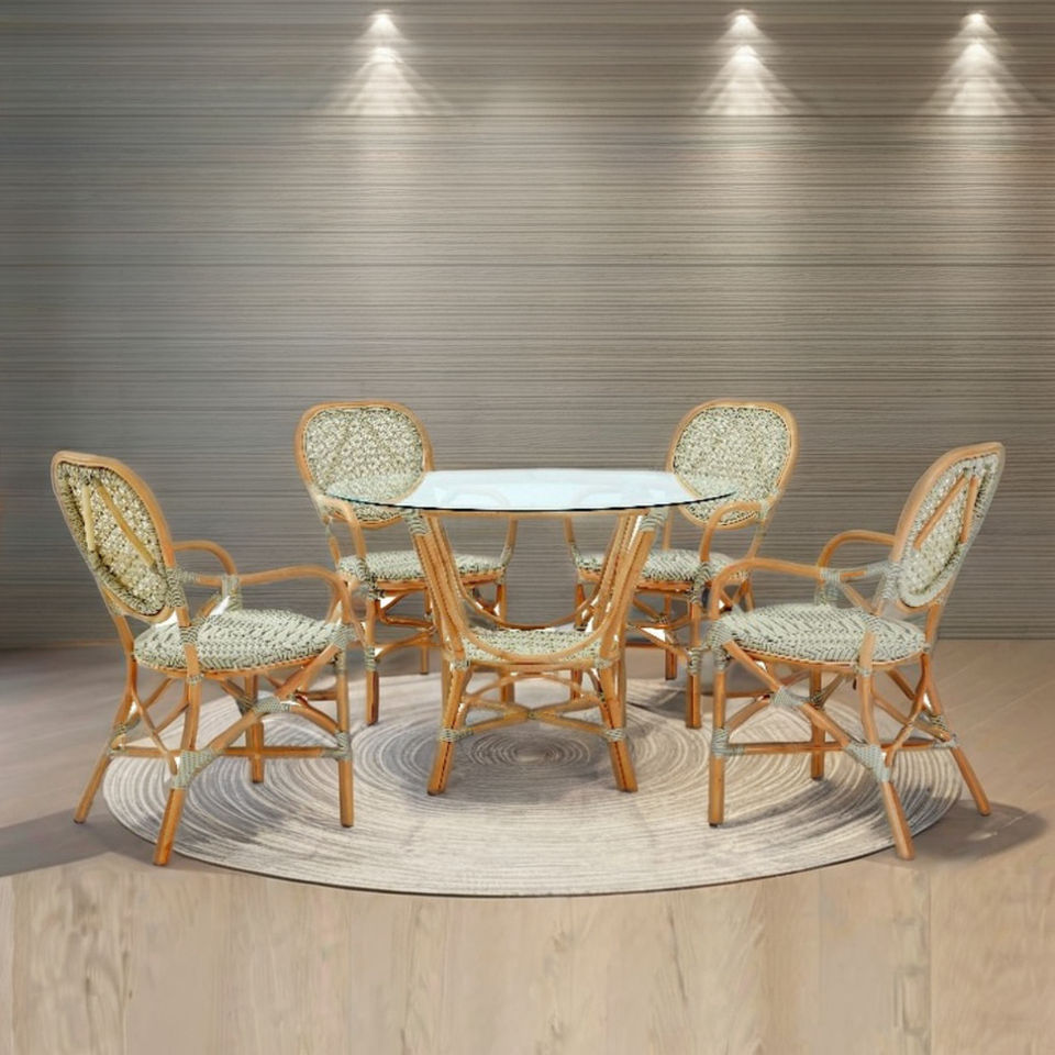 Juego de comedor Jamaica Bistro, sillas tejidas a mano de ratán elegante, mesa para jardín, sala de estar, duradero, cómodo para muebles para el hogar
