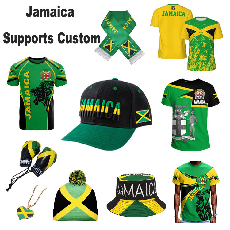Gorra de béisbol con bandera jamaicana, gorro de punto de pescador, collar, guantes de boxeo, conjunto de accesorios temáticos con bandera jamaicana