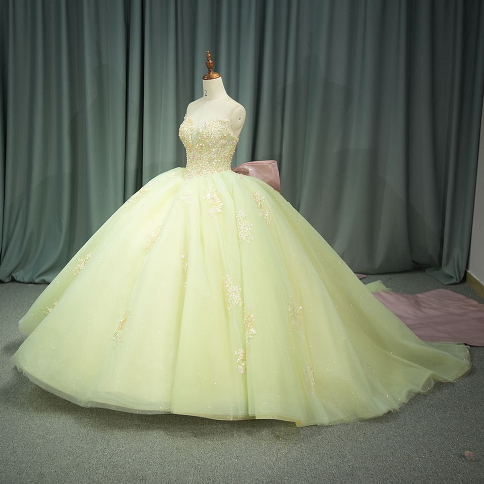 Jancember 1275 Elegantes Vestidos de Fiesta de Encaje Amarillo con Lazo Rosa
