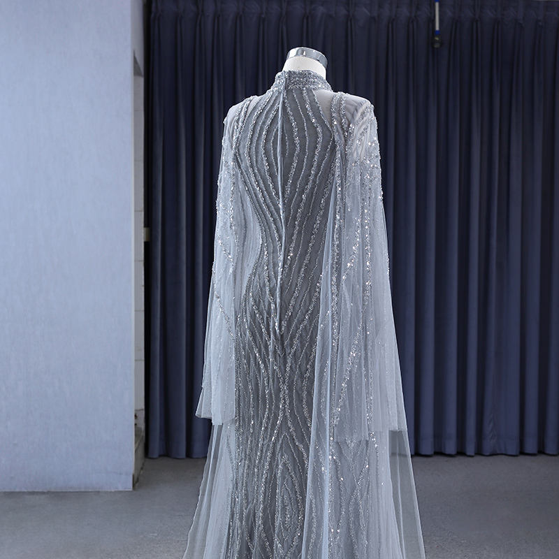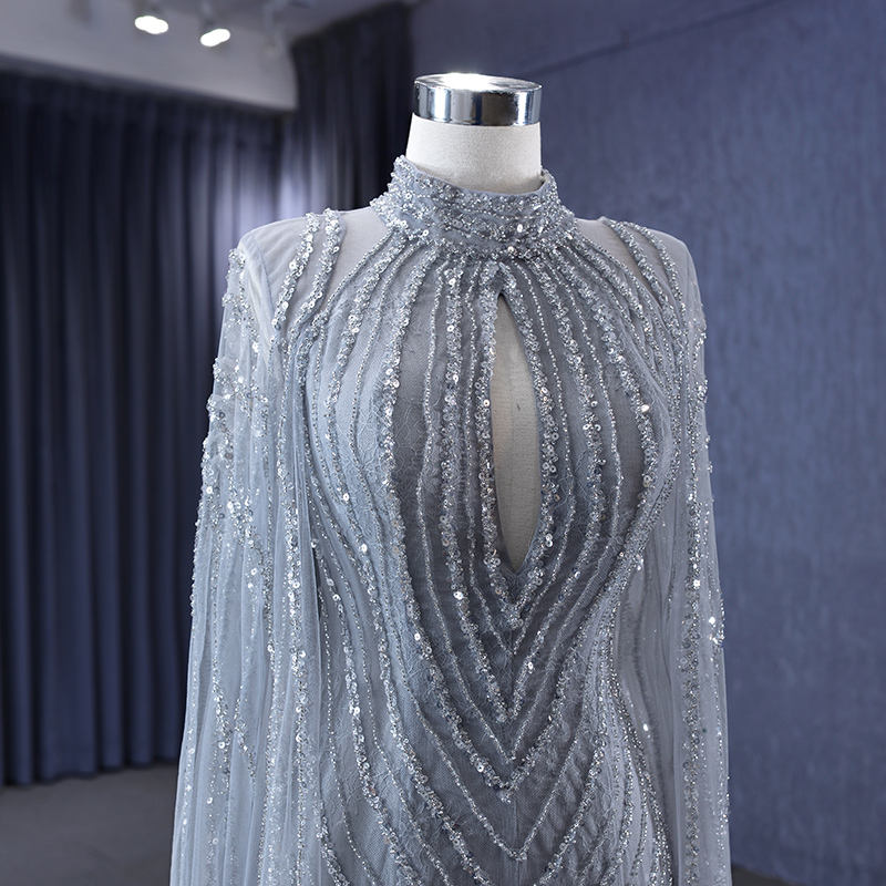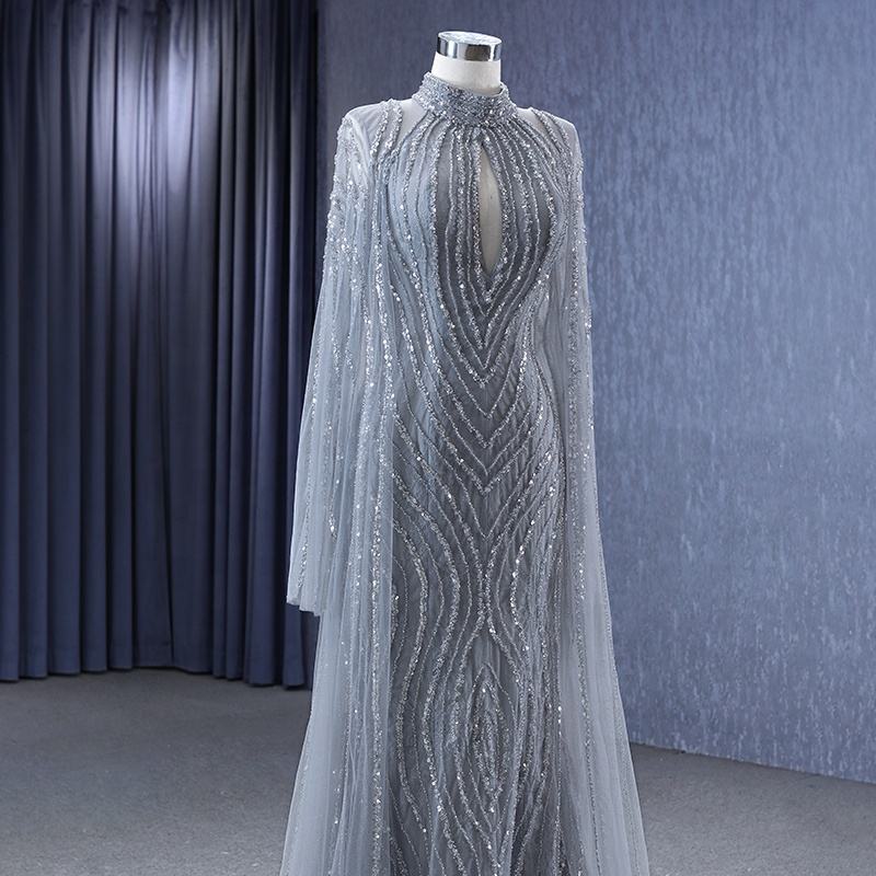 Vestido de Maternidad 222183 Antiestático con Encaje, Patrón de Cristal, para Fiesta, Formal, Cuello Alto, Talla Grande, Silueta de Sirena, Largo hasta el Suelo