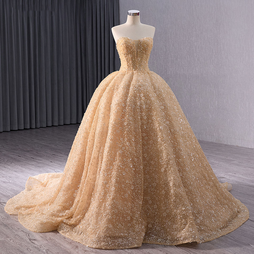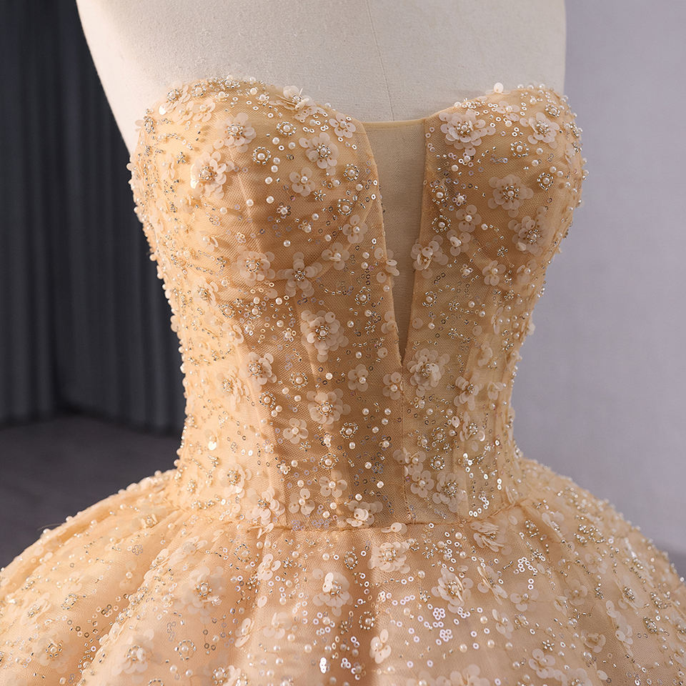 Jancember 241036 elegante vestido de noche dorado sin tirantes con lentejuelas y flores