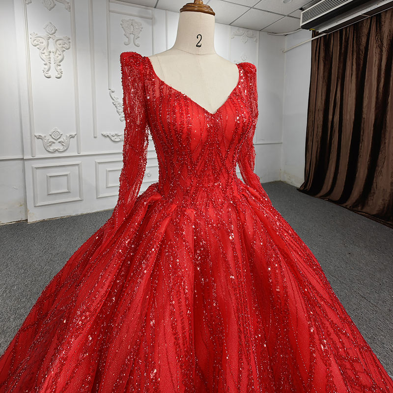 Jancember DY5667 V-cuello de manga larga con cordones vestido de baile Organza Vestidos de Noche de alta calidad