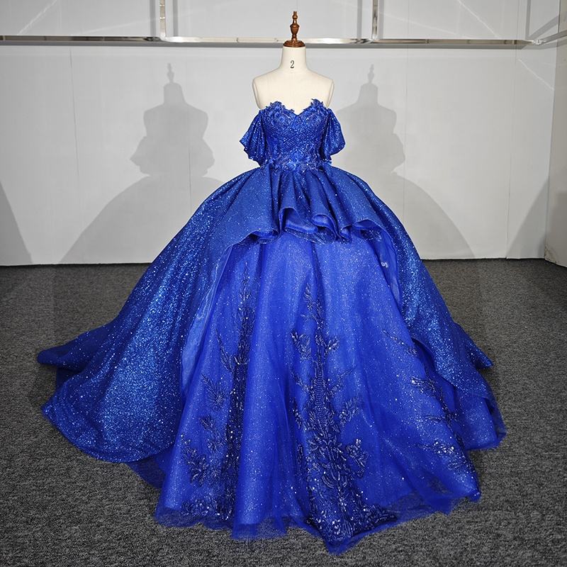 Jancember DY9995 Glitter Blue Ruffle Party Quinceanera Vestidos formales para mujeres