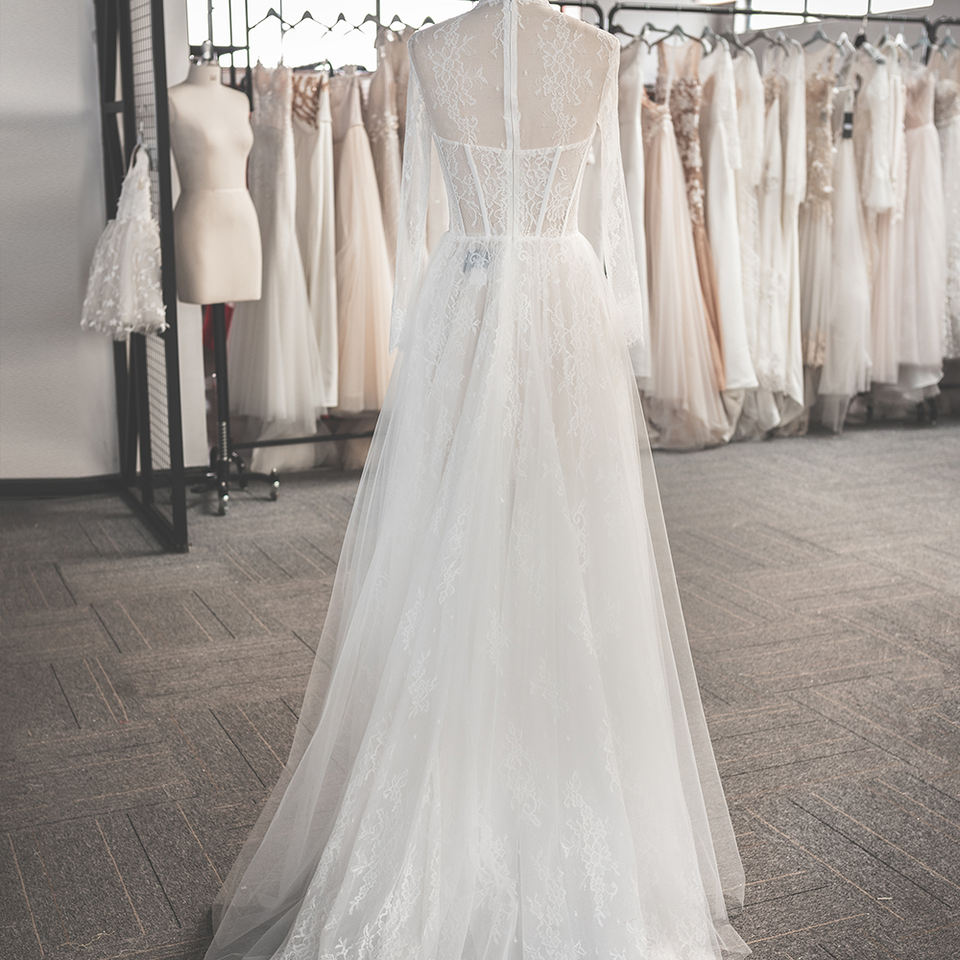 Jancember LSSG042 Ilusión Formal Cuello alto Nupcial A-line Vestidos de novia