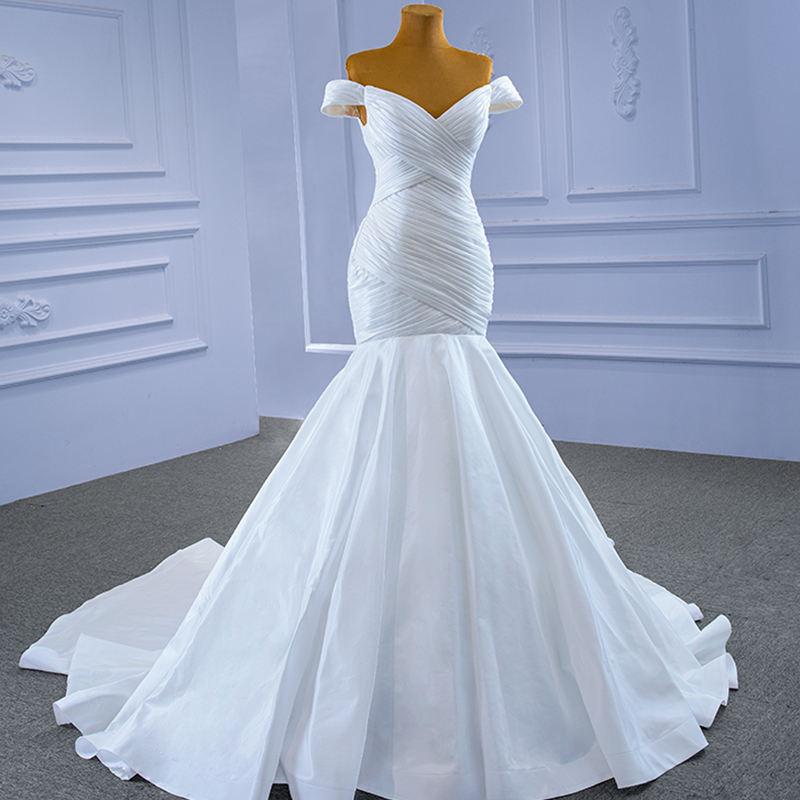 Jancember RSM67350 Vestidos de novia de sirena con volantes y hombros descubiertos de satén modesto