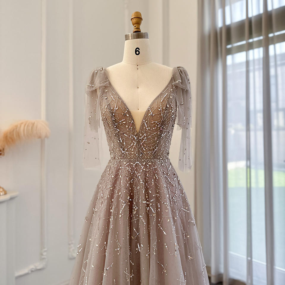Vestido de Fiesta Formal Largo Hasta el Suelo, Sin Espalda, Sin Mangas, con Plumas y Pliegues Antiestáticos, Modelo SZ097 Princess