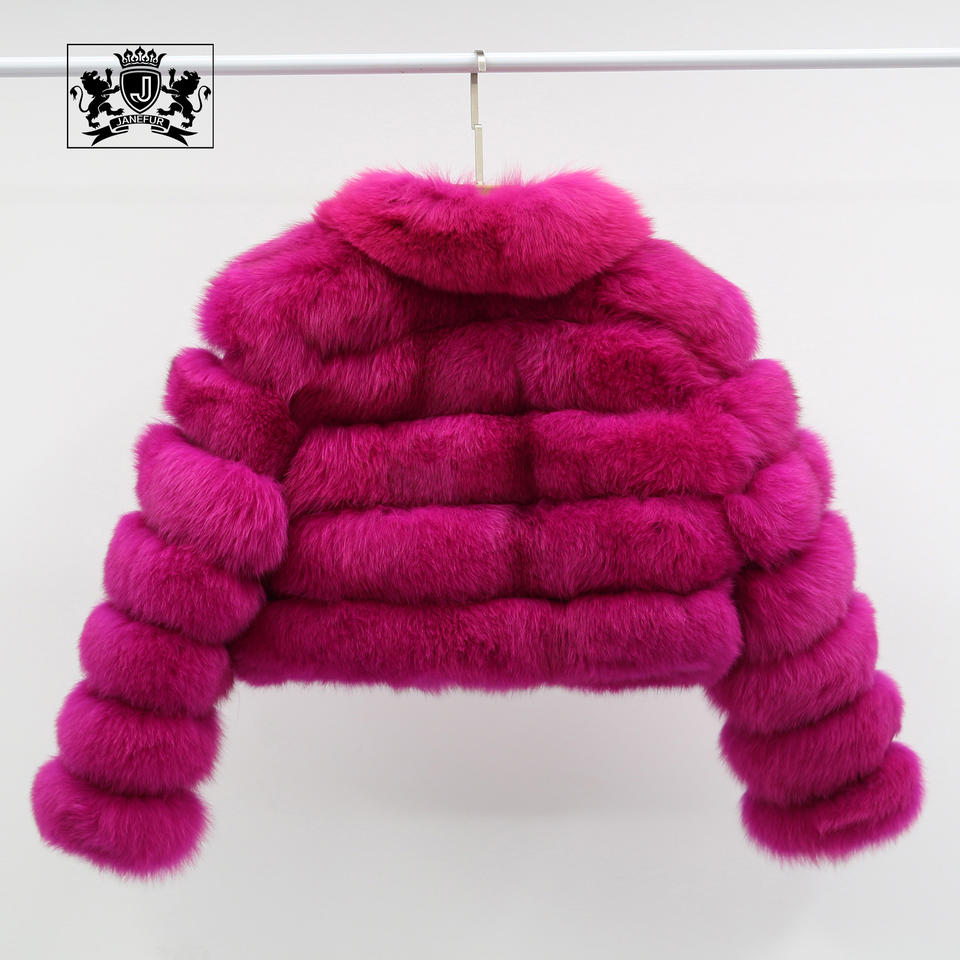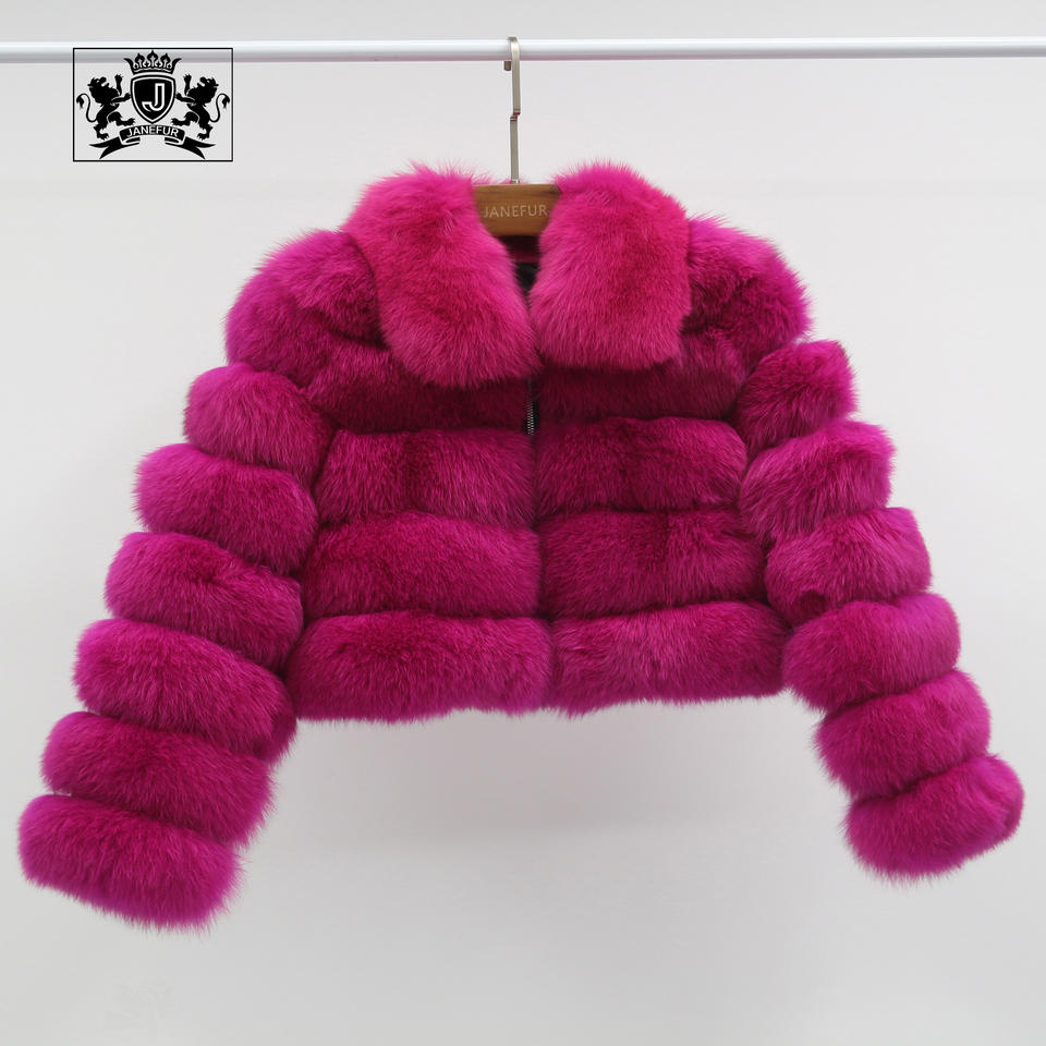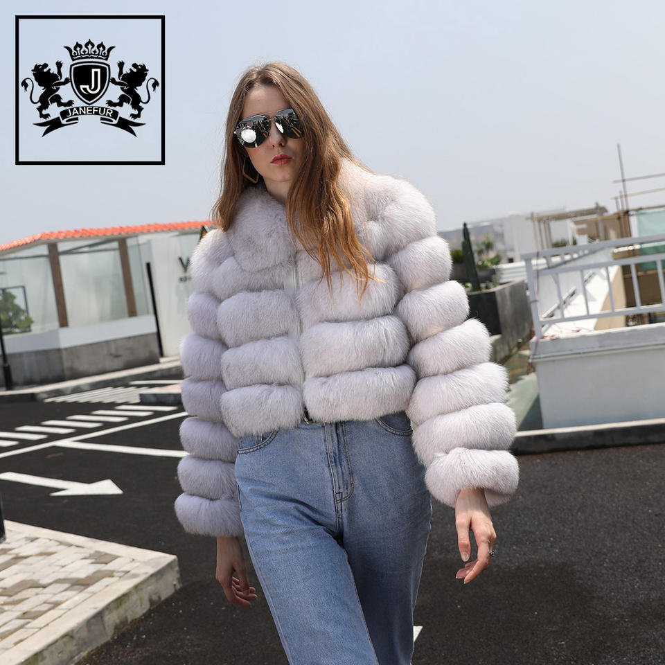 Janefur MOQ bajo, superventas, estilo corto de primavera, 5 secciones, tela de piel para mujer, cálido abrigo de piel de zorro real para mujer