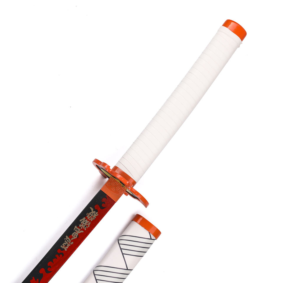 Espada Katana de Anime Demon Slayer de 102 cm, sin afilar, réplica real de la espada Nichirin de Kyojuro Rengoku, samurái japonés