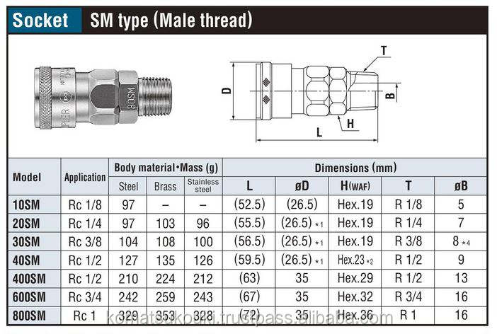 Acoplamientos Rápidos Nitto Kohki Hi-Cupla de Última Generación en Japón, 30SM para Conexión de Línea de Aire y Conexión Neumática