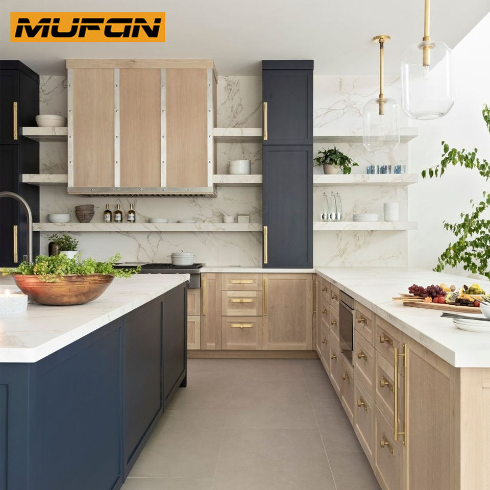 Muebles de Cocina Japandi, Gabinetes de Cocina Personalizados de Madera de Roble Blanco con Revestimiento de Chapa, Isla de Cocina Acanalada con Cajón de Cola de Golondrina