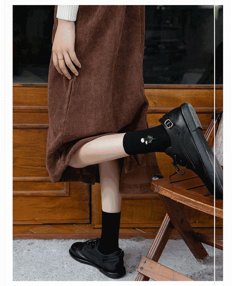 Calcetines de algodón elásticos bordados de Manzanilla de color caramelo japonés para mujer