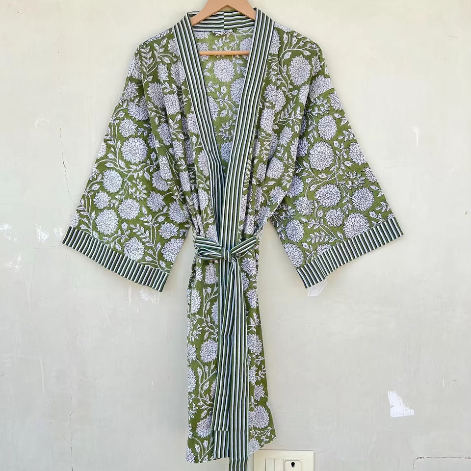 Kimono de algodón Bata estampada en bloque