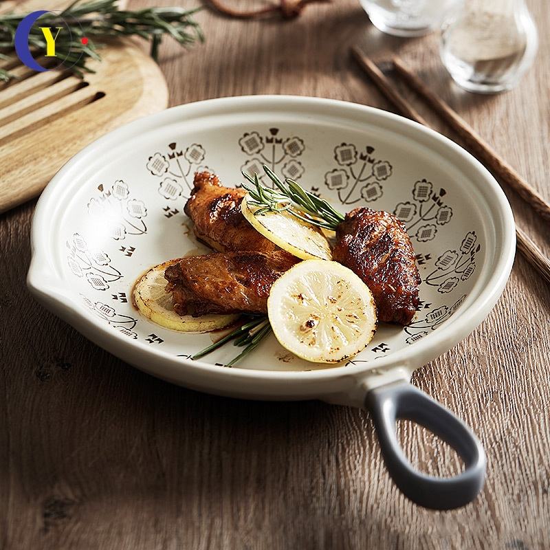 Sartén de porcelana japonesa creativa de un solo mango, apta para fuego abierto, con mango de cerámica para uso doméstico, para preparar la cena.