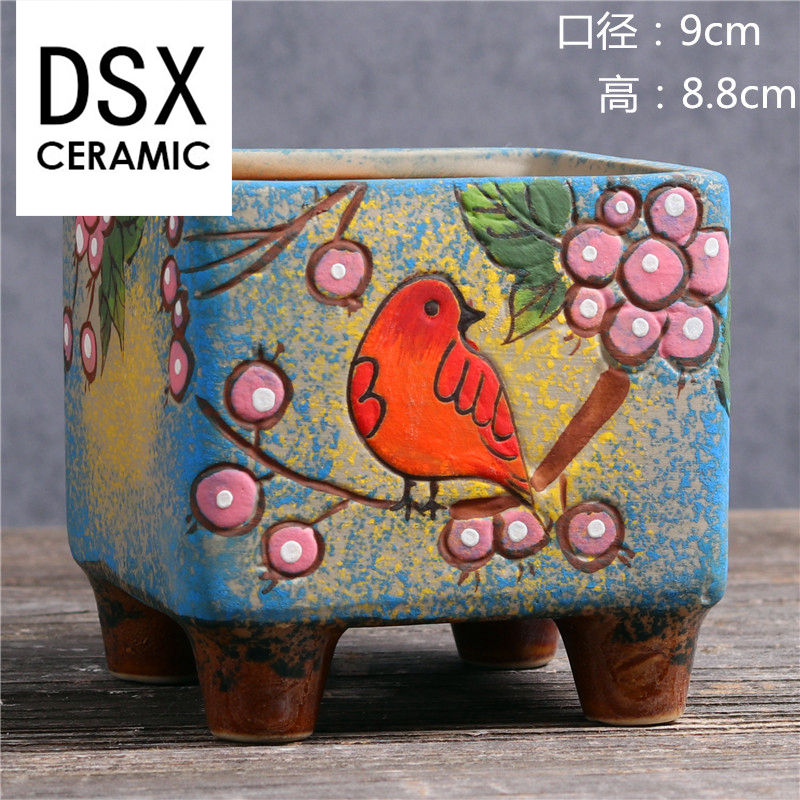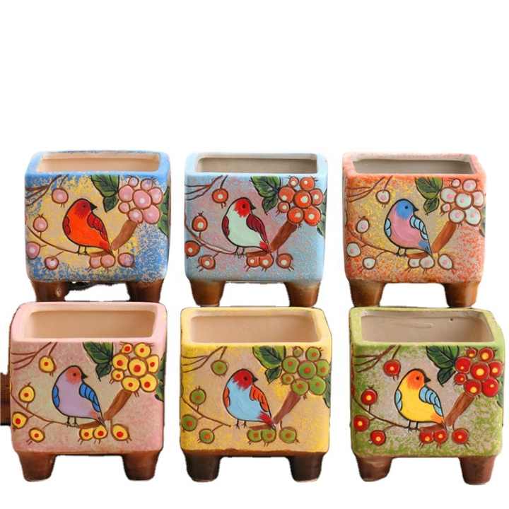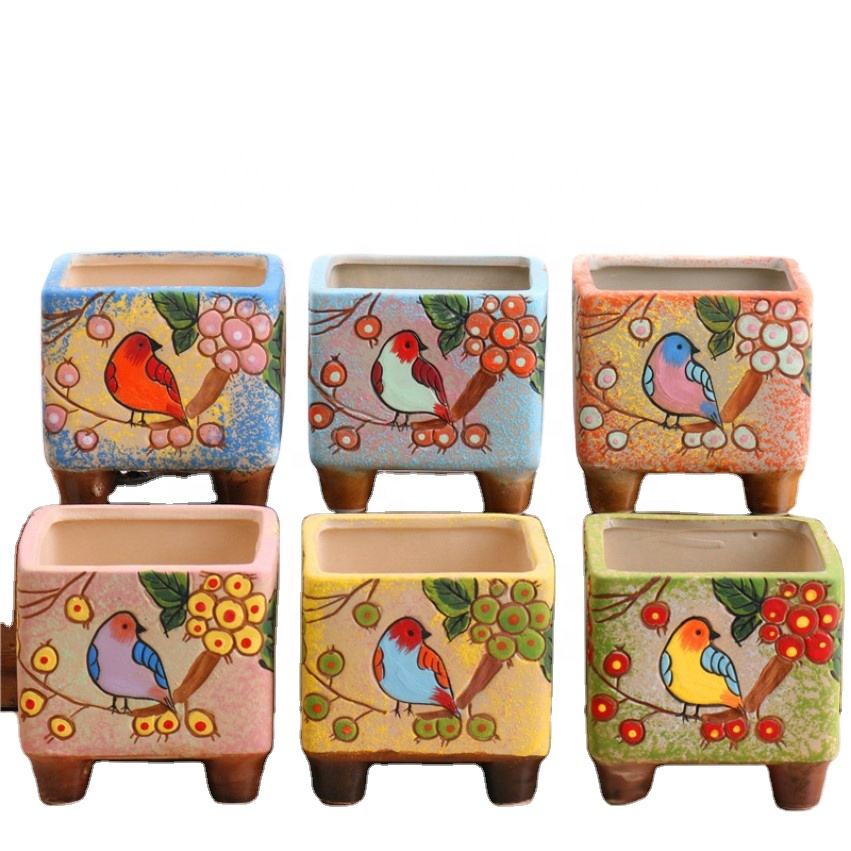 Mini maceta de mesa japonesa pintada a mano, macetas de cerámica de Cactus para plantas suculentas, venta al por mayor de China