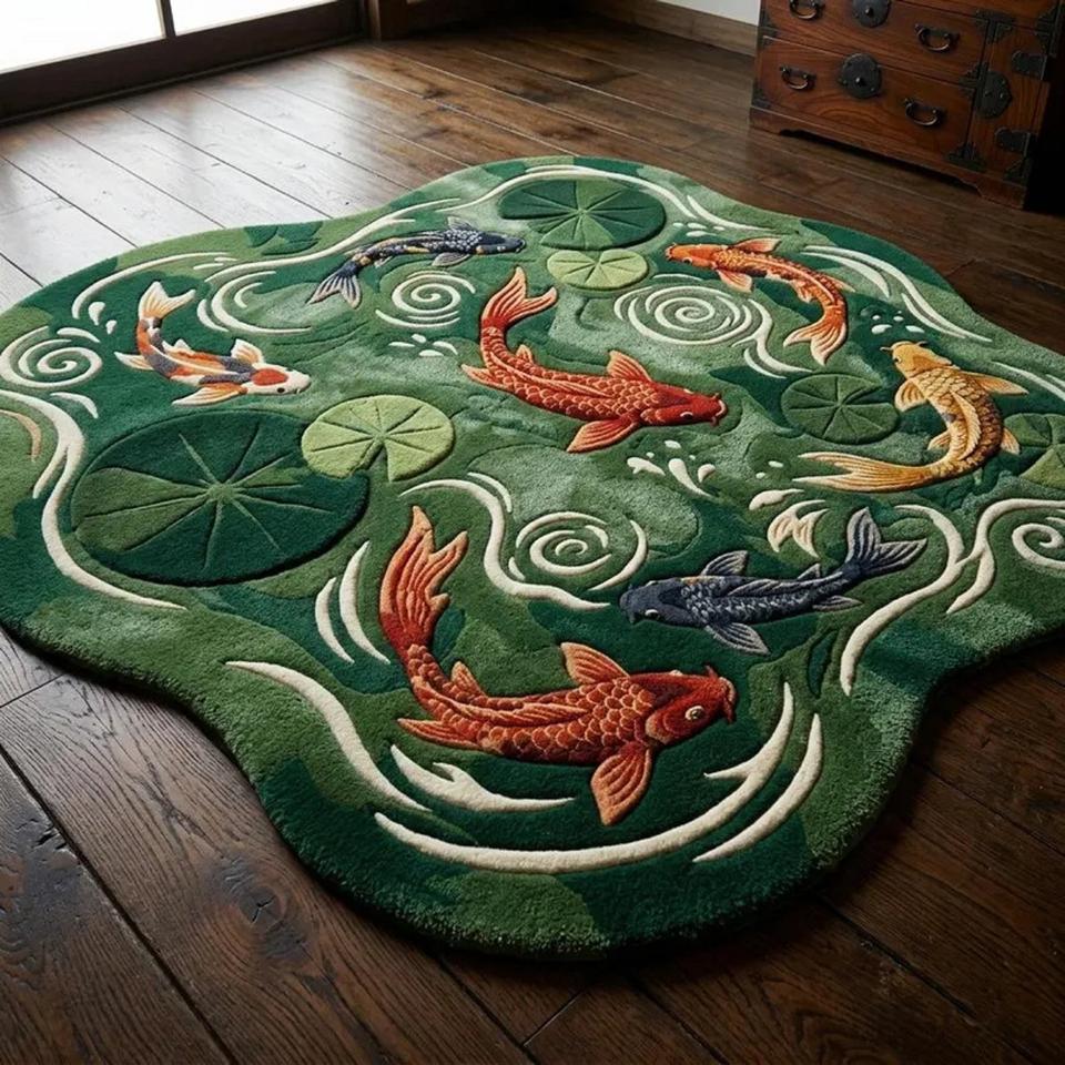 Alfombra de Felpa Suave con Diseño de Peces Koi Japoneses, Forma Irregular, Hecha a Mano, para Sala de Estar, Dormitorio, Decorativa y Estética