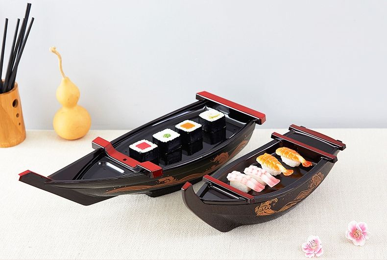 Recipiente de Sushi de laca japonesa, barco Dragón de cocina de surtido, plato de plástico ABS, barco de hielo seco para mariscos, Sashimi, mariscos