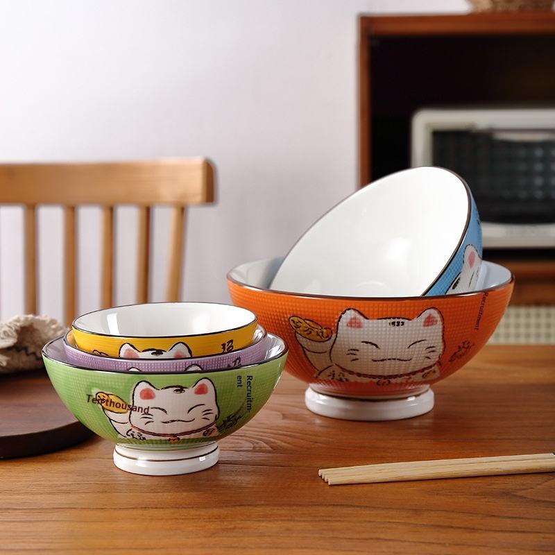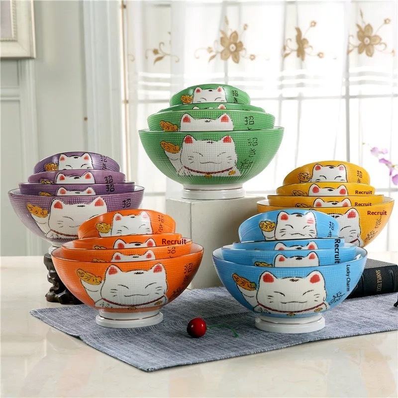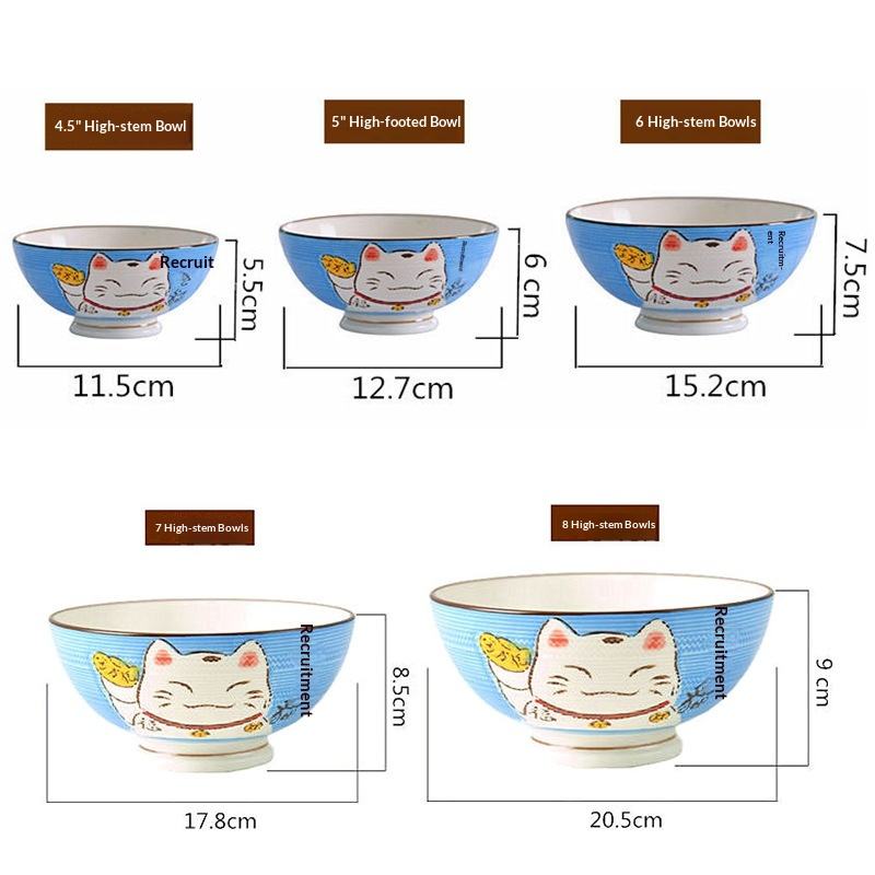 Juego de Tazones de Arroz de Cerámica con Diseño de Gato de la Suerte Japonés, Pintado a Mano con Patrón Maneki Neko, para Hogar, Restaurante, Caja de Regalo, Venta al Por Mayor