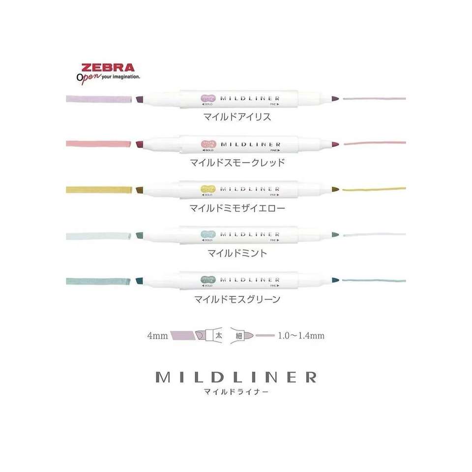 Tipo:Set de 5 marcadores suaves ZEBRA MILDLINER - Resaltador Suave