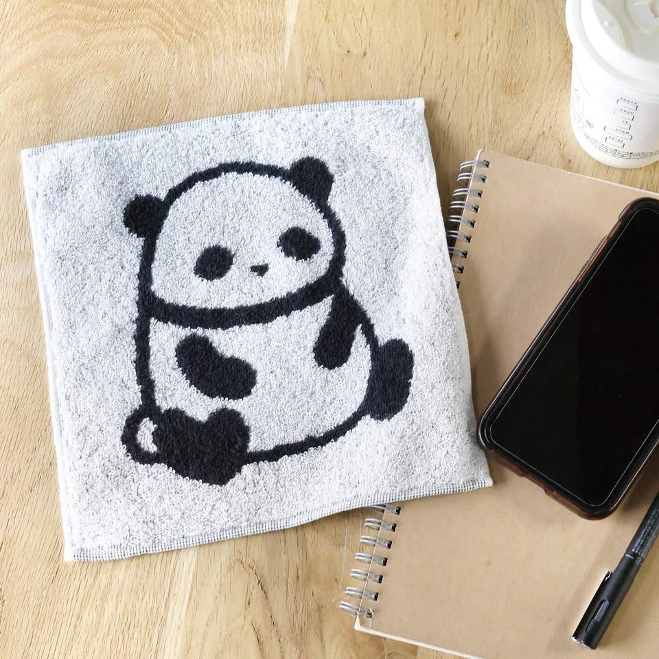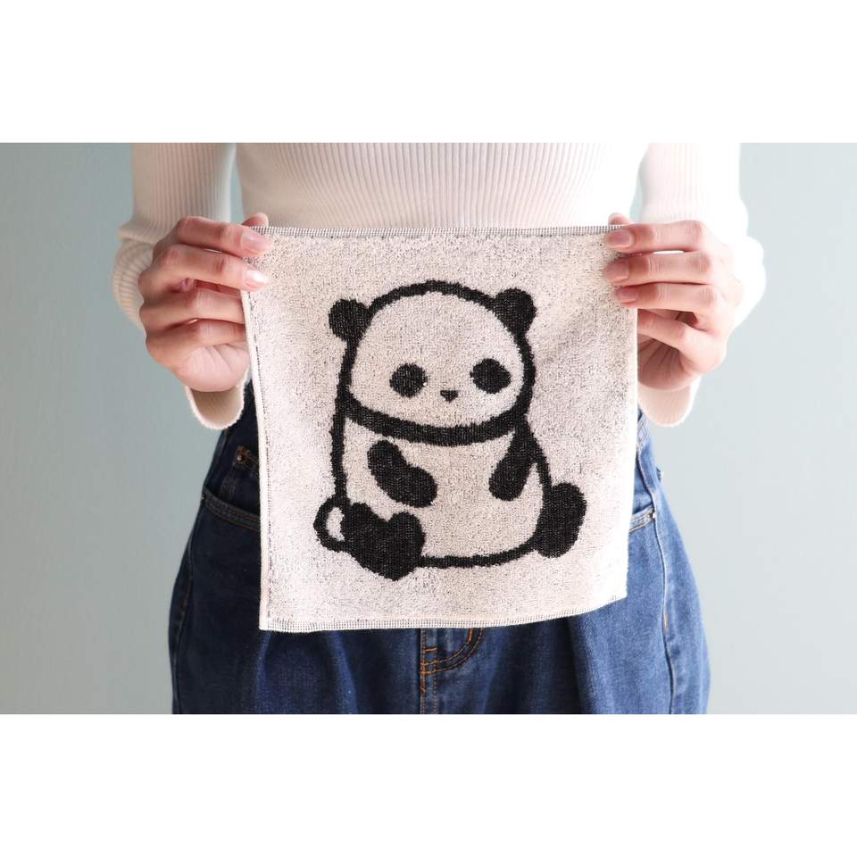Pañuelo de algodón 100% de marca Imabari de fabricación japonesa 20cm * 20cm frontal con diseño de Panda Jacquard