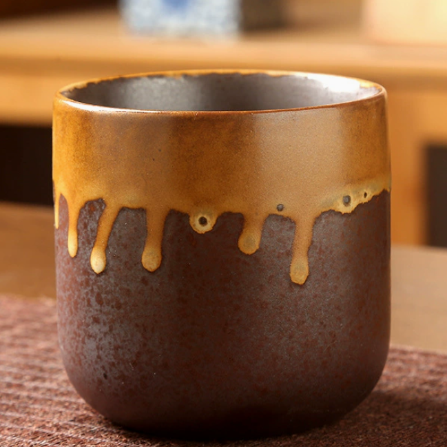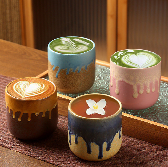 Taza de café de cerámica retro japonesa sin asa, taza de café con leche de cerámica gruesa
