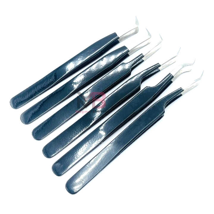 Juego de pestañas de acero japonés, 4 pinzas de extensión de pestañas de agarre liso, pinzas de 90 grados, pinzas de pestañas, punta de fibra, Color negro mate
