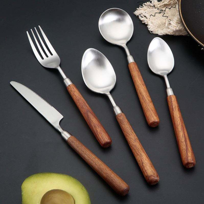 Juego de cubiertos estilo japonés de acero inoxidable 304, mango de nogal, vajilla occidental desechable mate Retro, utensilios de fiesta, cuchillo