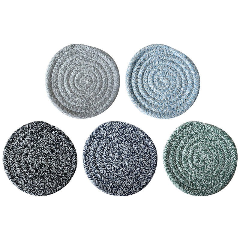 Alfombrilla redonda de aislamiento térmico de cuerda de algodón de estilo japonés, posavasos tejido de color sólido de 11cm para uso doméstico