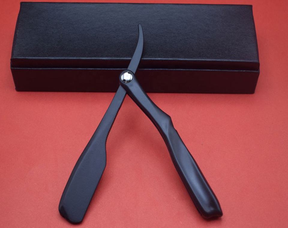 Navaja de Afeitar Tegra Surgical Estilo Japonés, Personalizada, para Hombre, de Acero Inoxidable, Media Hoja, Negra, Profesional, Segura y Limpia