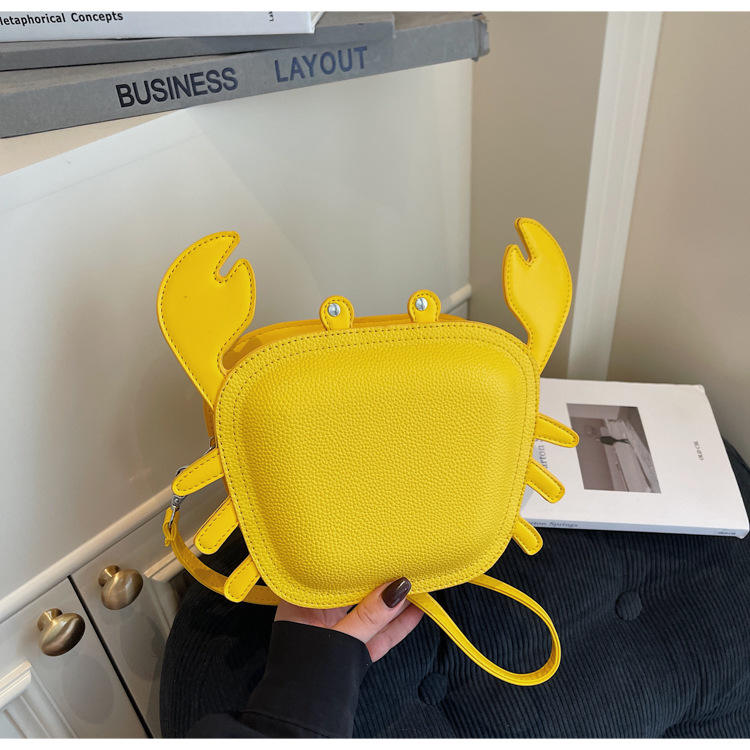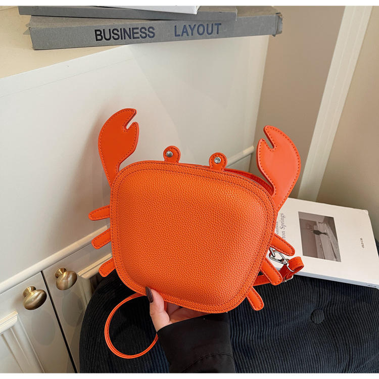 Bolso de hombro pequeño con diseño de cangrejo de dibujos animados creativo personalizado de estilo japonés, bolso de cuero Pu de concha 3D divertido único