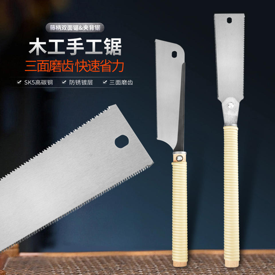 Japanese Style Double Sided Rattan Handle Hand Saw Steel Blade For Woodworking DIY Precision Cutting