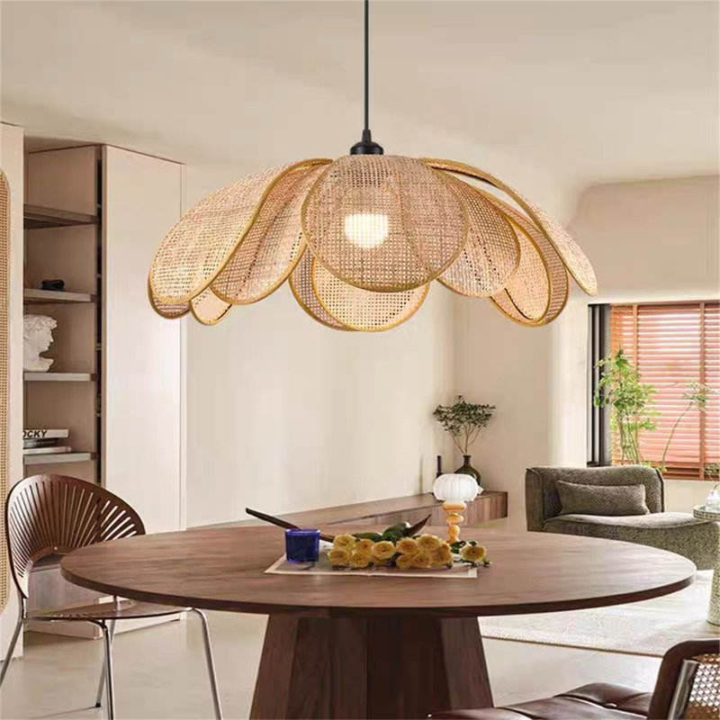 DreamCraft estilo japonés E27 lámpara colgante de pétalo de ratán tejido Vietnam 30cm diámetro 26cm altura accesorio de muebles creativos