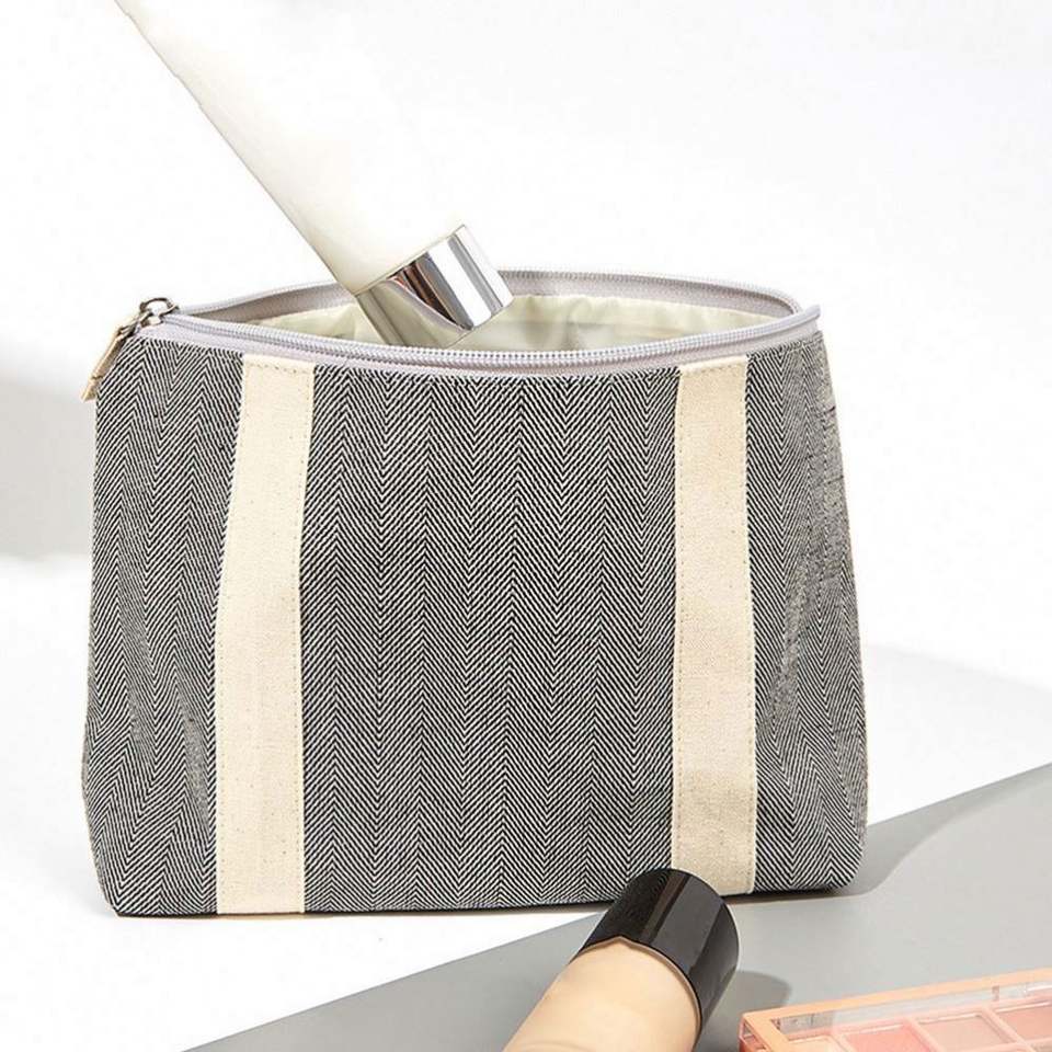 Bolsa de Cosméticos de Gran Capacidad Estilo Japonés, Bolsa de Maquillaje de Lona Ecológica para Uso Diario, Bolsa de Viaje con Cierre