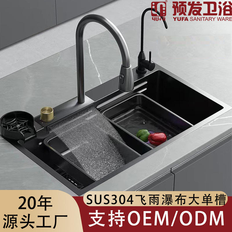Black stainless steel sink + gunmetal gray Raindance faucetcolor