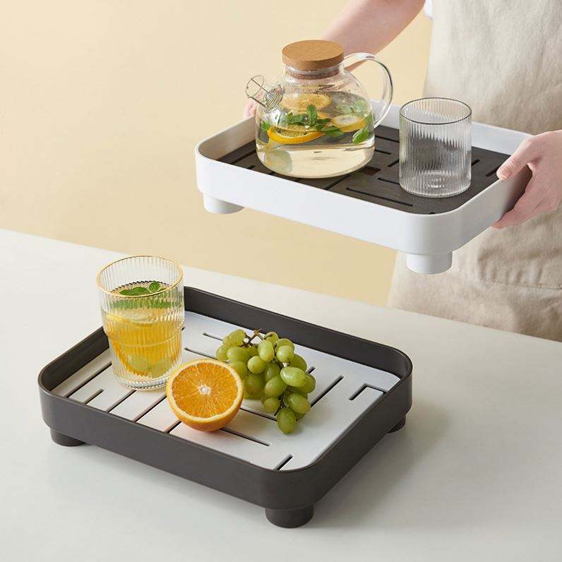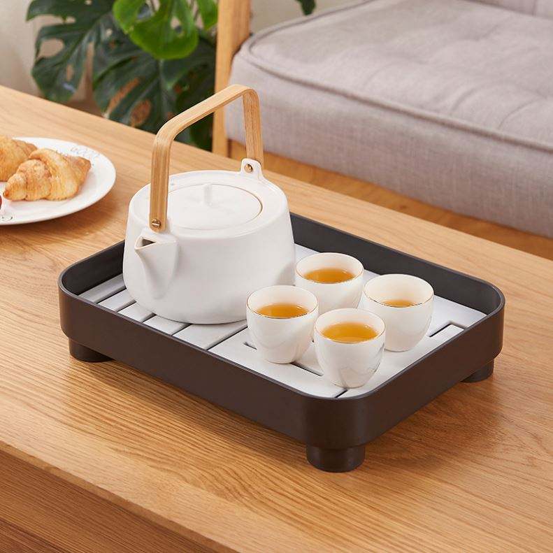 Bandeja de Té Cuadrada Moderna de Estilo Japonés con Almacenamiento de Agua, Plástico PP Multifuncional, Bandeja de Almacenamiento Sostenible para Sala de Estar