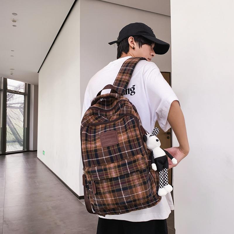 Japanese Style Plaid Backpack For School Students Unisex Multiple Pockets Waterproof Wear Resistant Spine Protecting Summer 2024