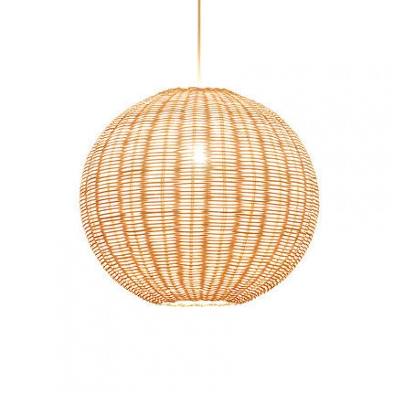 Lámpara colgante redonda de ratán estilo japonés con LED E27 para sala de té o restaurante