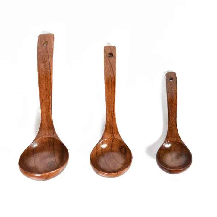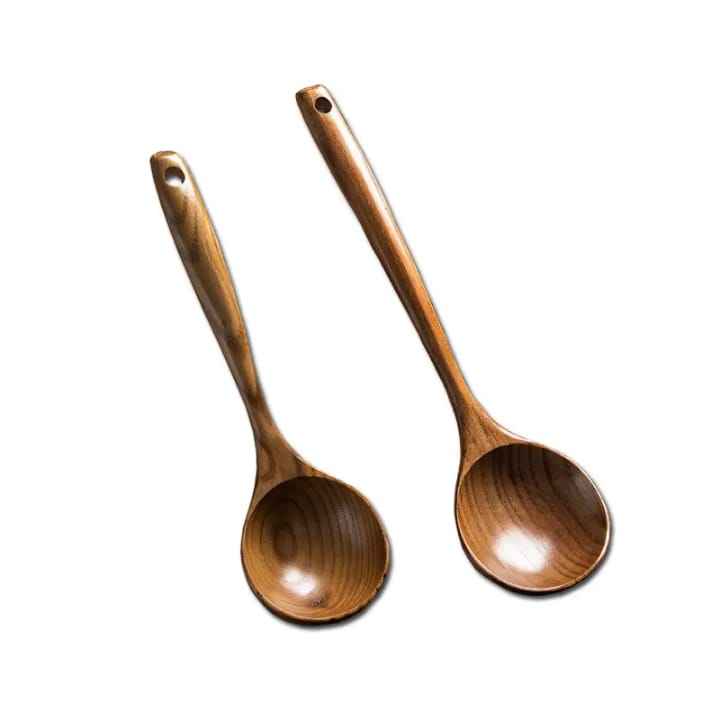 Juego de Vajilla de Madera Reutilizable Estilo Japonés - Cuchara y Tenedor con Mango Largo y Envoltura de Hilo para Ramen, Ensaladas y Comidas Diarias