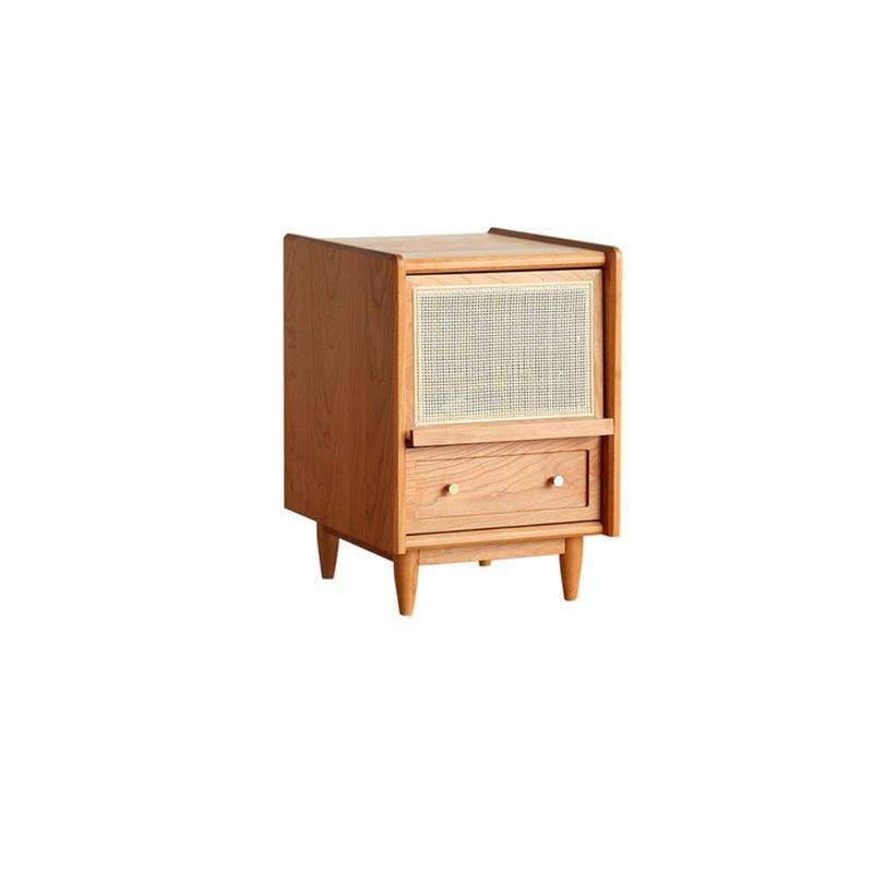Mesita de Noche de Madera Maciza Estilo Japonés, Gabinete de Almacenamiento con Cajones de Mimbre Tejido, Muebles para Dormitorio