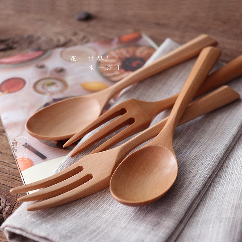 Vajilla de estilo japonés, juego de cuchara de sopa, cena, fruta, tenedor creativo, cuchara pequeña de madera, letras, mango largo, cuchara de madera para Fideos