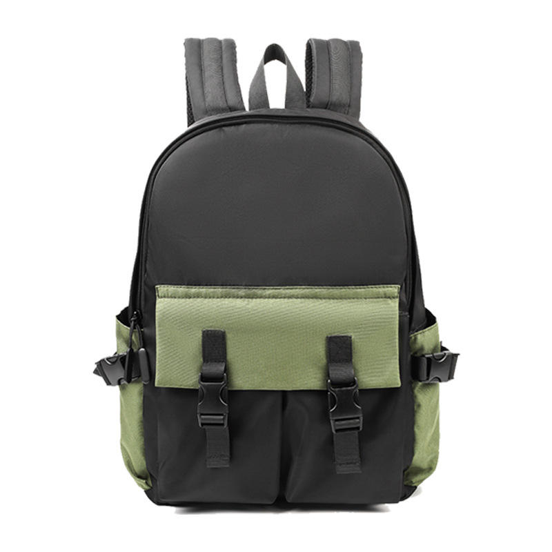 Mochila Unisex Estilo Japonés, Gran Capacidad, Compartimento para Portátil, Color Negro y Verde, Diseño Sólido, Correas para Hombros, Uso Diario